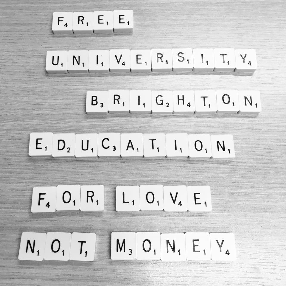 Free University Brighton has been working since 2012 to provide an alternative and for the last five years we’ve been running ‘freegrees’. These are University level courses, open to all regardless of qualification. Our courses range from 4 week long introductory courses aimed at First Years (people who have never been to University before) to 12-week long Humanities, Social Sciences and Philosophy courses that rival anything in a ‘traditional’ University. We do this all with no money exchanged anywhere – no fees, no debt.